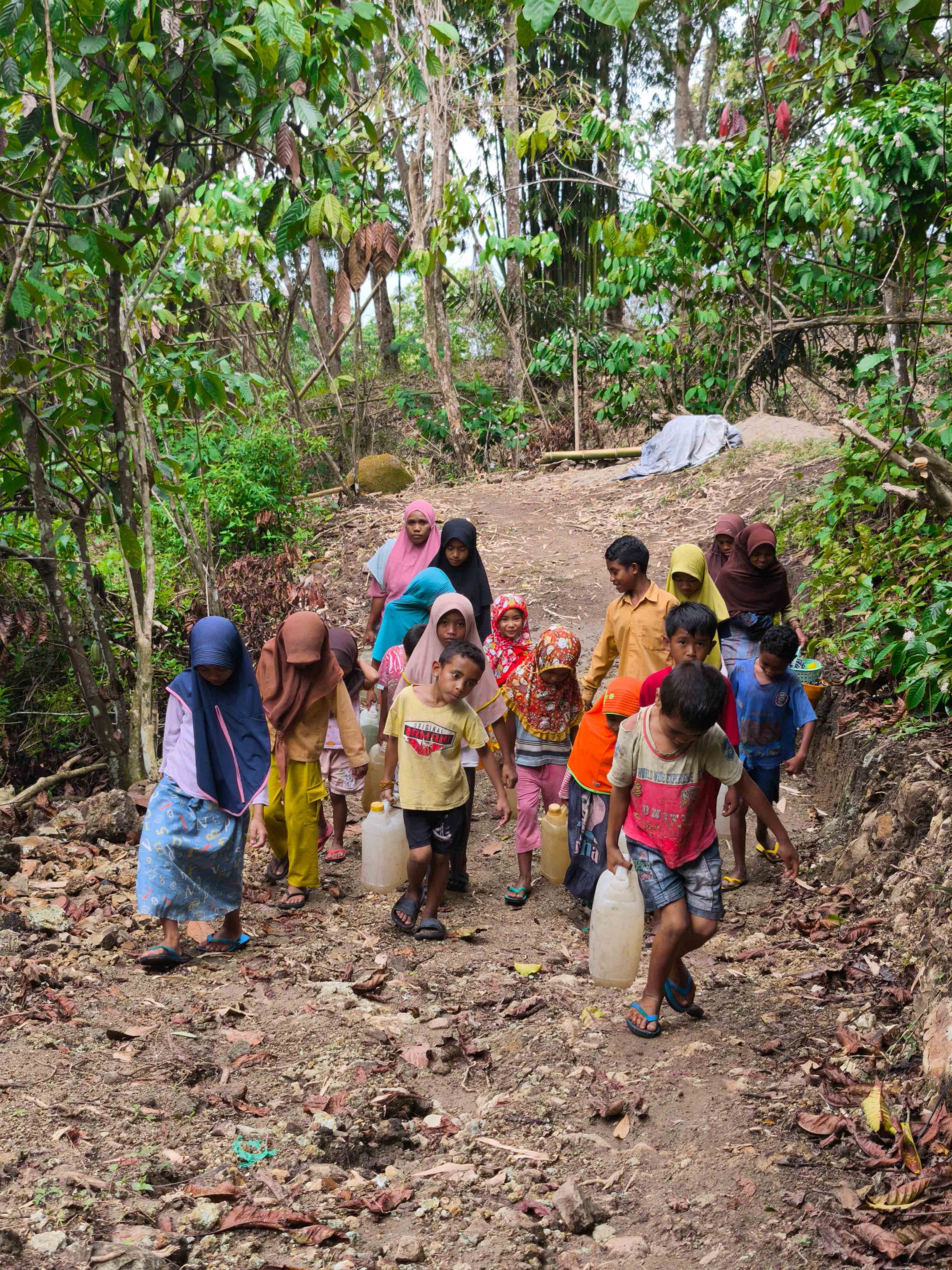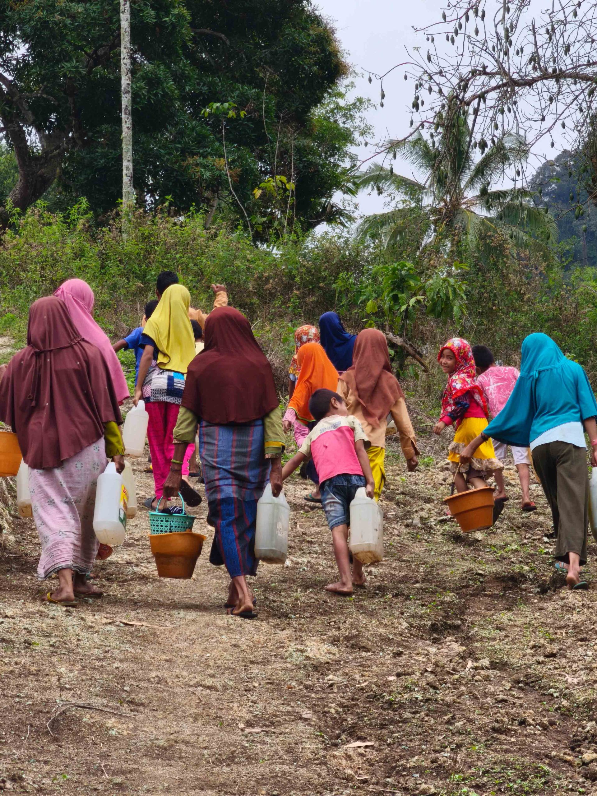 Setiap hari, warga Kampung Nu harus berjalan sekitar satu kilometer melewati medan berbukit, naik dan turun, demi mendapatkan air. Perjalanan ini bisa memakan waktu hingga satu jam sekali jalan. Yang paling memilukan, anak-anak pun ikut memikul jerigen, mengorbankan waktu bermain dan belajar demi membantu keluarga mereka bertahan hidup.