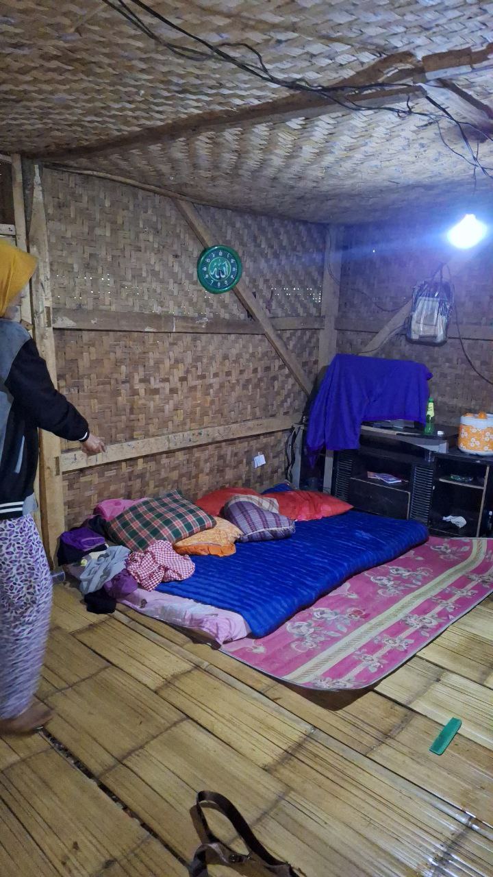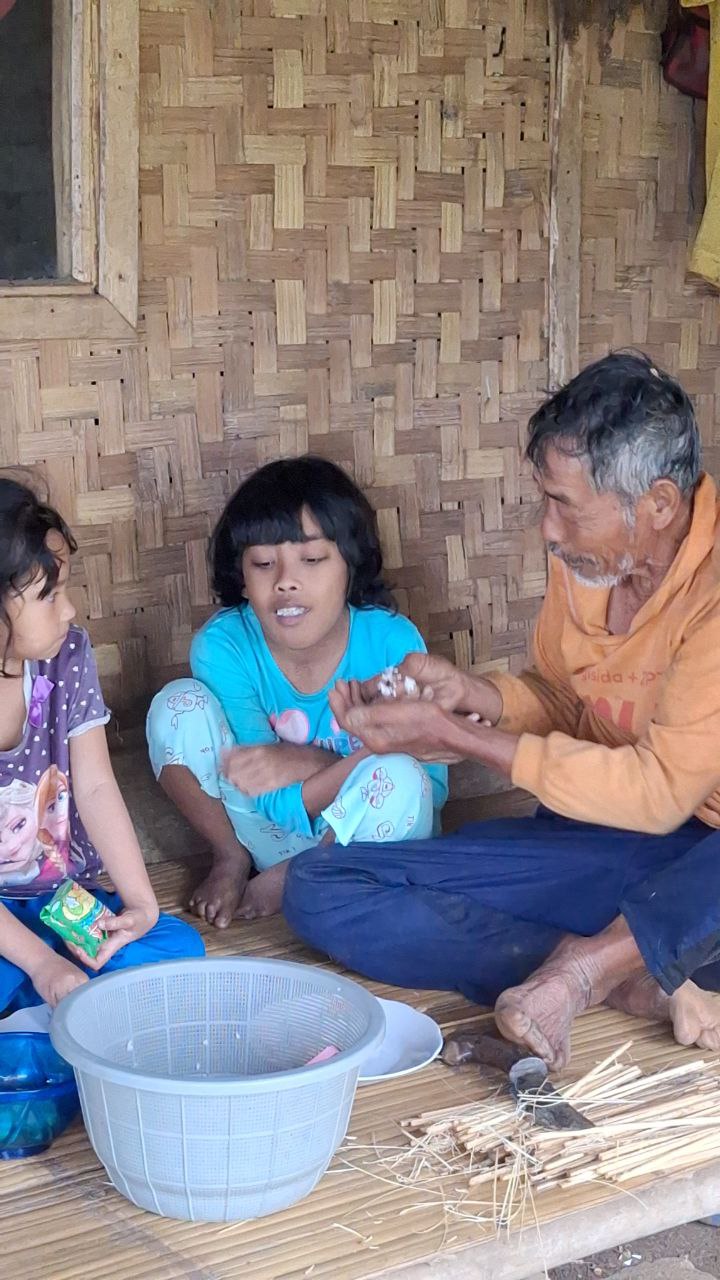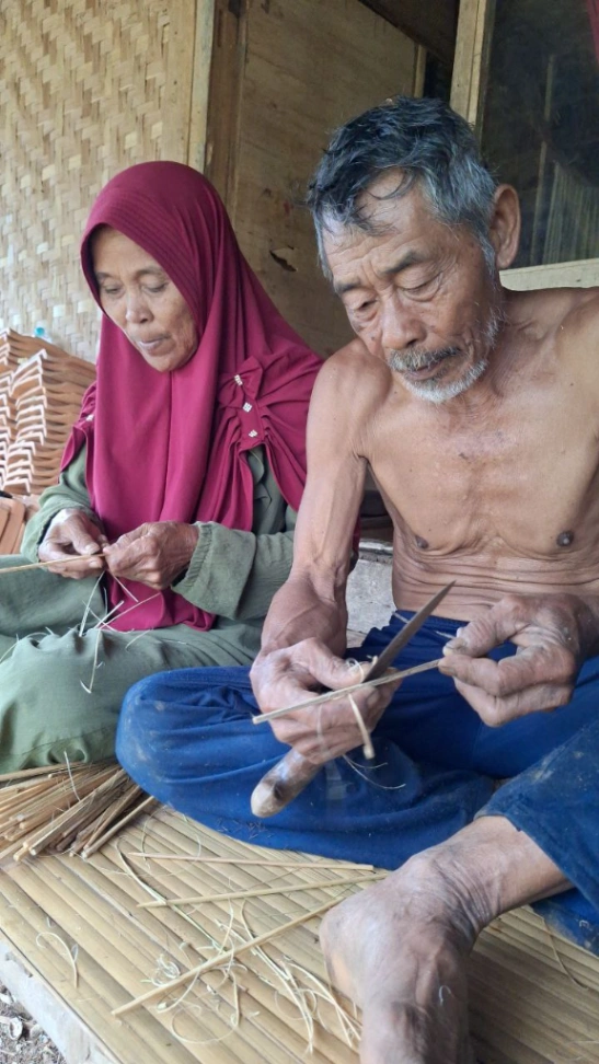 Upah dari hasil menjual tusuk sate itu? Kadang hanya Rp10.000 hingga Rp15.000 per hari. Uang itu harus dibagi untuk makan bersama, membeli kebutuhan harian, serta memberikan sedikit bekal sekolah untuk cucu-cucu. Bahkan, untuk makan pun, kadang keluarga kecil ini masih dibantu oleh tetangga. Rumah yang mereka tinggali sekarang bukan rumah layak huni. Pernah roboh. Kini hanya berdinding bilik, atapnya bocor, tak ada kasur yang layak, dan seluruh bangunan itu adalah hasil swadaya warga sekitar. Tapi Abah tetap bersyukur. Yang penting cucu bisa makan dan sekolah, katanya lirih.