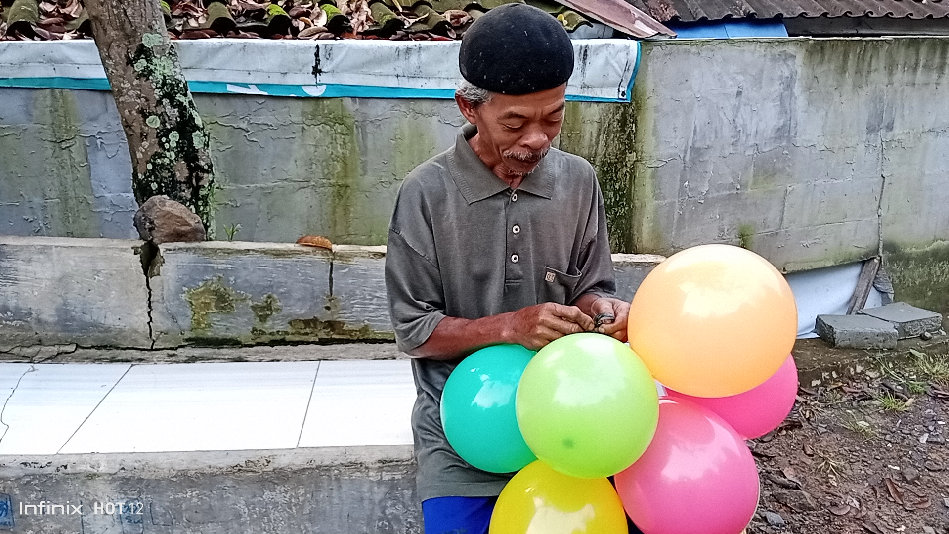 Abah Karta, seorang pria berusia 60 tahun, setiap hari harus berjalan tertatih-tatih sejauh 20 kilometer, berharap ada yang membeli balon yang digenggamnya. Dengan langkah berat, dia berkeliling demi mencukupi kebutuhan keluarganya dan biaya pengobatan istrinya yang sangat membutuhkan perawatan.