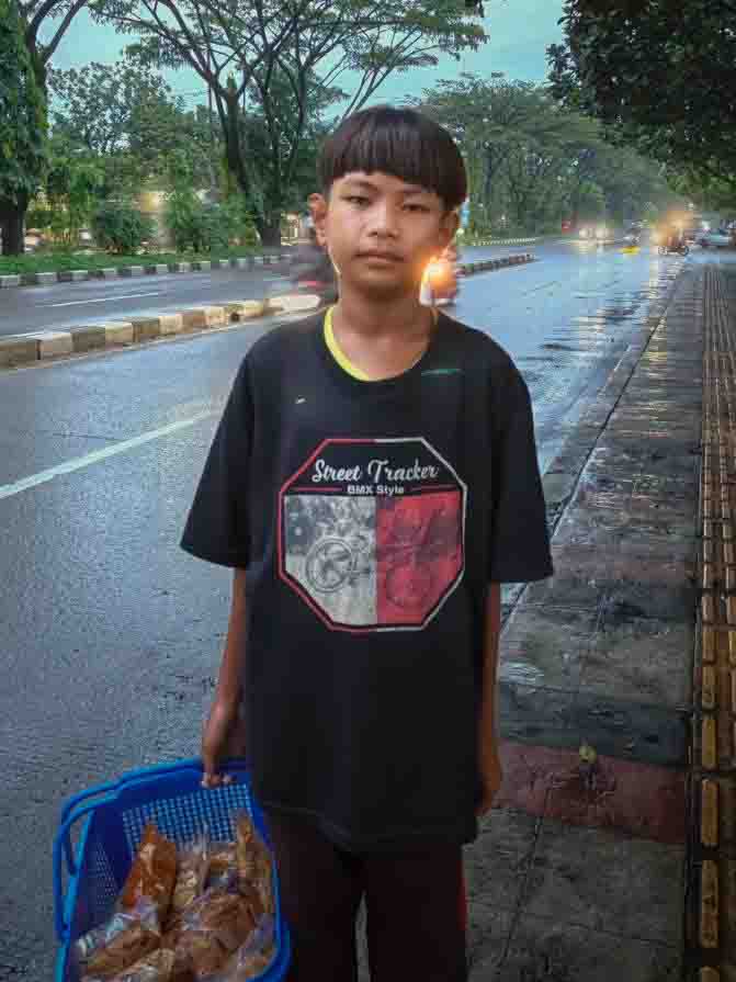 Seharusnya saat ini Latip duduk di bangku sekolah. Namun kenyataannya berbeda. Sejak kecil, Latip harus meninggalkan masa sekolahnya karena kondisi ekonomi keluarga yang sangat sulit. Saat anak-anak lain belajar di kelas, Latip justru harus berjalan berkeliling menjual cemilan agar keluarganya tetap bisa makan.