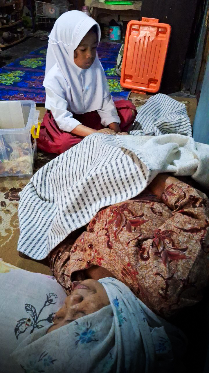 Lovely bukan anak manja. Ia sudah terbiasa menahan banyak hal sendirian. Kadang matanya terlihat sembab, tapi begitu ditanya, ia langsung tersenyum kecil dan bilang, “Aku kuat kok… yang penting Mbah sembuh.” Anak sekecil itu… menenangkan orang dewasa… sambil memikul beban yang bahkan orang besar pun belum tentu kuat.