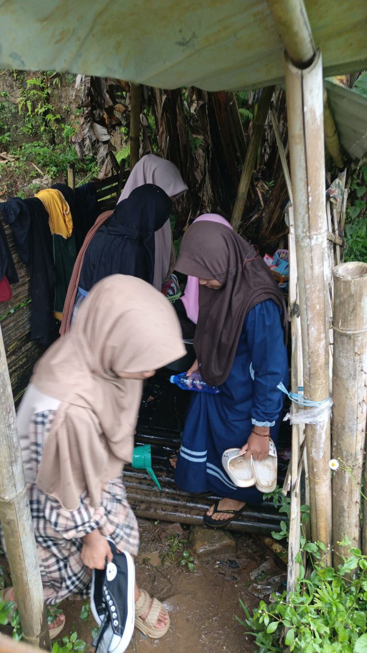 Satu per satu berdiri dalam antrean panjang, menunggu giliran untuk mandi, mencuci, atau sekadar buang air. Tidak ada pintu yang kokoh, tidak ada privasi, hanya dinding tipis yang goyang diterpa angin.