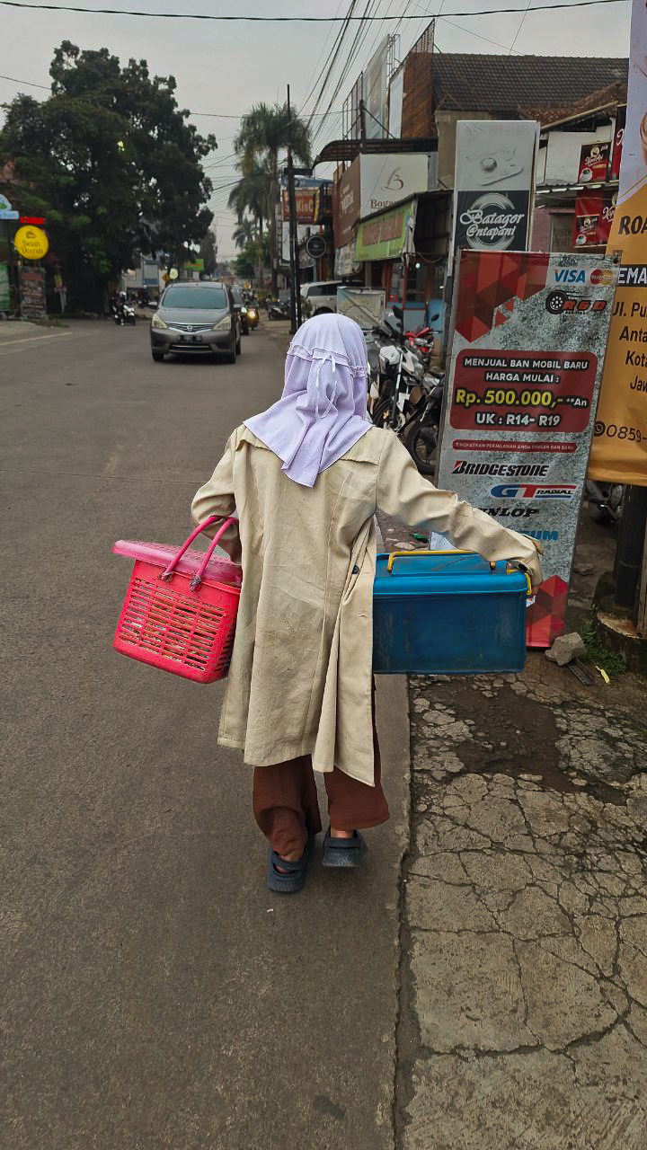 Ia berusaha mandiri, membantu sebisanya, tetap berjualan, dan tetap bersekolah.
