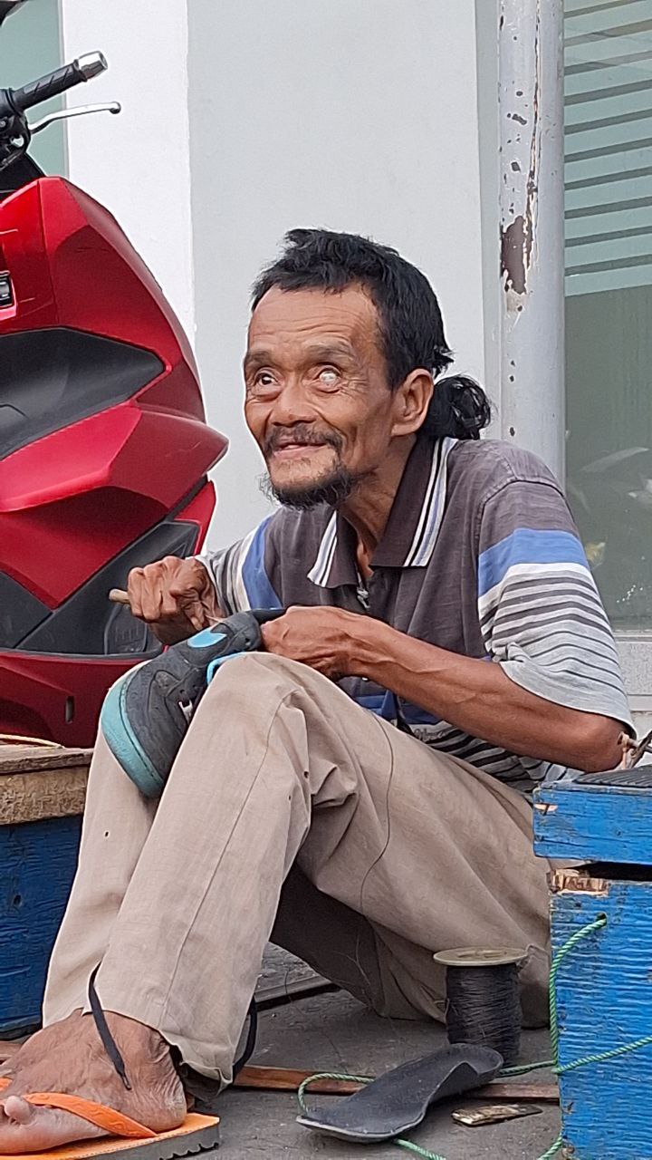 Abah Deni (60 tahun) adalah tukang sol sepatu keliling. Sejak duduk di bangku SD hingga hari ini, ia berjalan puluhan kilometer dengan keterbatasan penglihatan. Upah yang diterima seikhlasnya, sering kali hanya cukup untuk makan dan berobat sang istri.