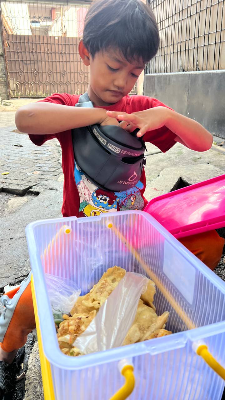 Setiap hari, ia berkeliling menjajakan gorengan buatan tetangganya.