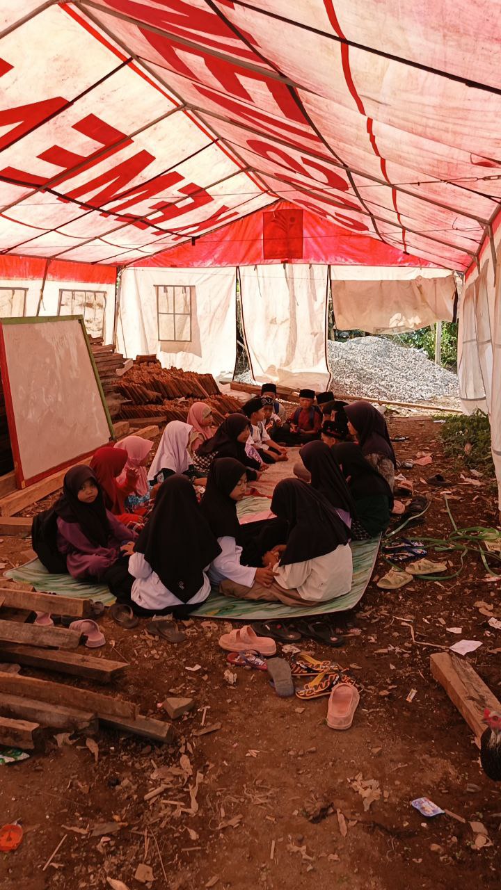 Hari ini, 640 santri & warga terdampak harus belajar berpindah-pindah—di rumah warga, garasi, mushola, hingga tenda seadanya. Panas, sempit, dan tidak layak, namun mereka tetap bertahan demi masa depan.